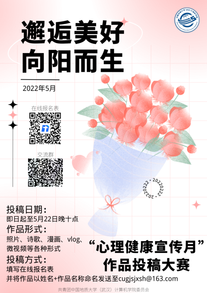 (通讯员:赵飞越)为丰富校园生活,关注点滴美好,正确认识心理健康,提高师生幸福感,yl6809永利官网现面向全院师生征集彰显计科青年朝气蓬勃、阳光乐观、积极向上的作品,作品形式包括照片、诗歌、漫画、vlog、微视频等,届时将制作优秀作品展板,与师生共享美好。快来参与吧~